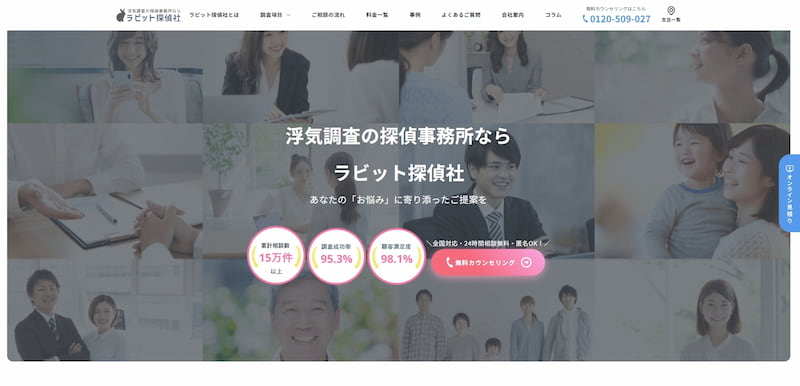 電話・LINE・ZOOMでの無料相談に対応しており、はじめて探偵への依頼を検討している方でも気軽に問い合わせられます。