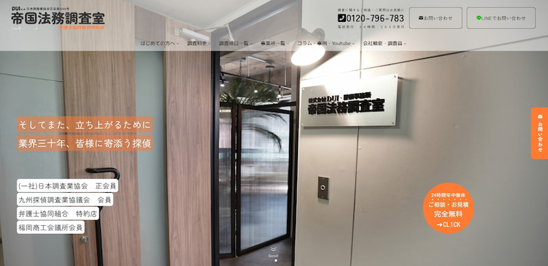 福岡支店は博多区中洲に構えており、調査成功率97.3%・解決実績91,000件超という実績を持ちます。
