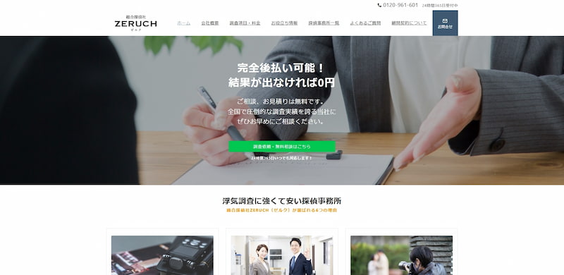 総合探偵社ゼルク(ZERUCH)は、株式会社ZERUCH INFINITYが運営する浮気調査に特化した探偵事務所です。